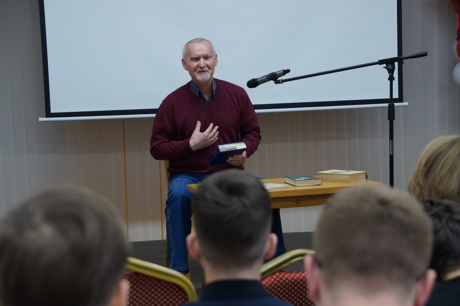 Акцентировал внимание школьников на документальном жанре Александр Астафьев, депутат горДумы, член Союза писателей России и ветеран ОВД. Он зачитал эпизод из сборника местного краеведа и педагога, участника Великой Отечественной Виктора Гриневича «Среднеуральцы на войне 1941-1945 годов», в котором описан реальный подвиг нашего земляка, старшего лейтенанта Георгия Киселева, командира роты связи, погибшего на поле боя в 1943-м. Александр Владимирович поведал и о единственном в городе энергетиков и Медной столице ветеране – кавалере ордена Суворова – Николае Мальцеве (книгу о нем написал сам народный избранник).
